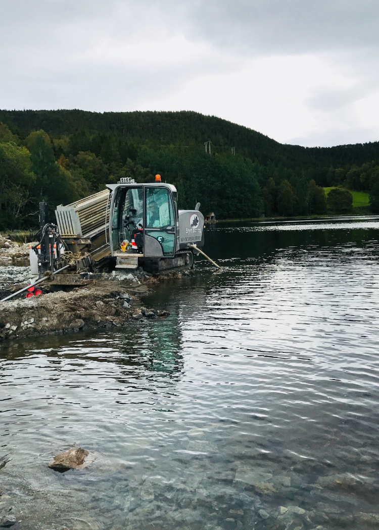 BORING. Statens Vegvesen har undersøkt fjellforholdene ved Møreaksen for undersjøisk tunnel under Romsdalsfjorden.
